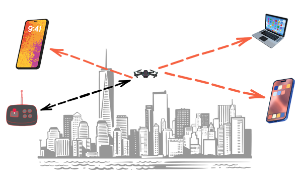 Remote ID refers to a drone’s capability to broadcast identifying and location data—like a digital license plate—via a wireless signal that anyone nearby can receive. This information is vital for authorities and others to monitor drone activity and ensure safety in U.S. airspace.